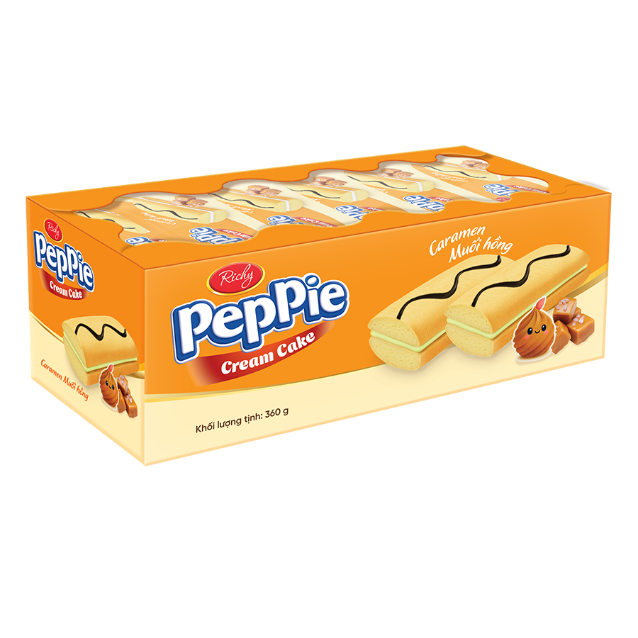 Bánh Peppie khay vị caramen muối hồng Richy mang lại hương vị ngọt ngào bất tận cho người thưởng thức.