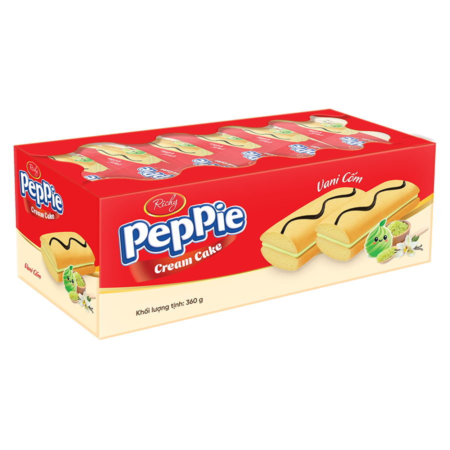 Bánh Peppie khay vị vani cốm Richy mang lại hương vị ngọt ngào bất tận cho người thưởng thức.