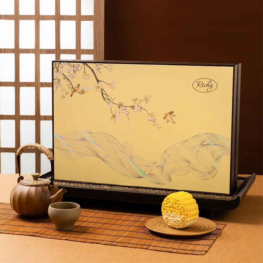 Hộp gồm 06 bánh 120g ➢ BN_ Tôm hùm sốt HK 120g ➢ BN_ Thập cẩm lạp xưởng gà quay xốt XO 120g ➢ BN_ Lava Đậu xanh Hoàng Kim 120g ➢ BN_ Hạt sen lục trà macca yến sào 120g ➢ BN_ Nhân Đậu đỏ Azuki Nhật Bản 120g ➢ BN_ Hạt Sen Macca 120g