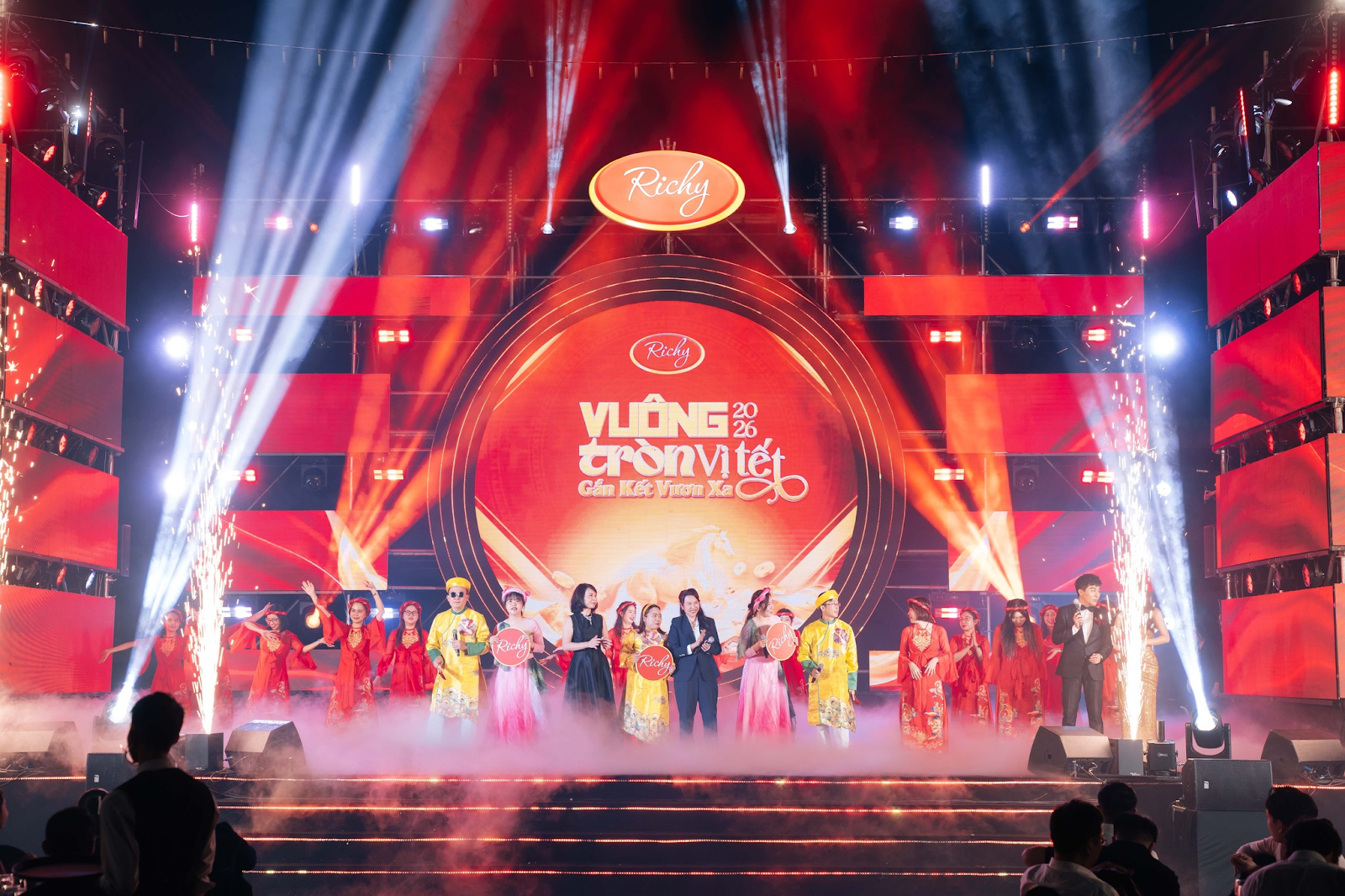 Đêm Gala với chủ đề “Vuông Tròn Vị Tết – Gắn Kết Vươn Xa” diễn ra trong không khí trang trọng và giàu cảm xúc, tôn vinh hành trình 25 năm hình thành và phát triển của Tập đoàn, đồng thời ghi nhận cột mốc 10 năm vươn mình mạnh mẽ của Richy Miền Nam. Một thập kỷ bền bỉ xây dựng nền móng sản xuất và hệ thống vận hành đã góp phần quan trọng khẳng định vị thế thương hiệu bánh kẹo Việt trên thị trường.
